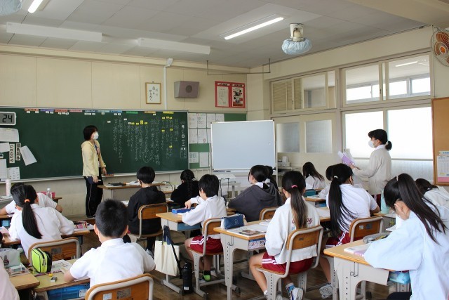 道徳科の時間には、自分の長所や短所、自分らしさについて考えました。図工の時間には、いろいろな音を絵に表して色付けをしました。