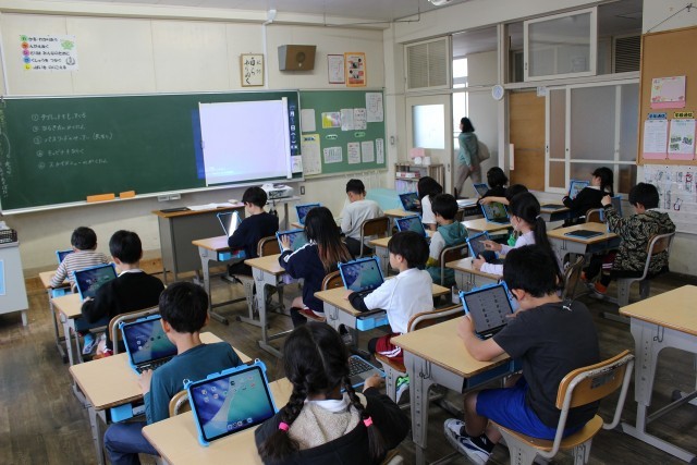 学習用タブレットの更新のため、「GIGAびらき」を行いました。使い方を確認したり、アプリをインストールしたりしました。