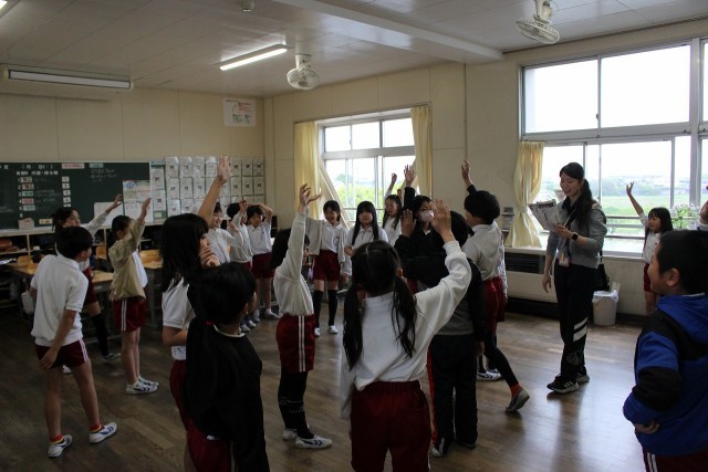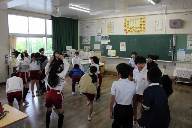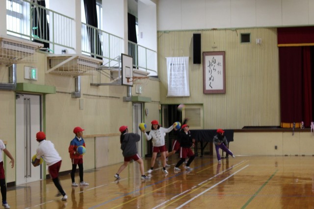体育の時間には、体力テストに向けてボール投げの練習をしたり、スティックゲームや表現を楽しんだりしました。