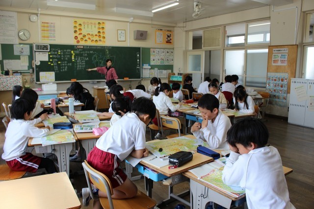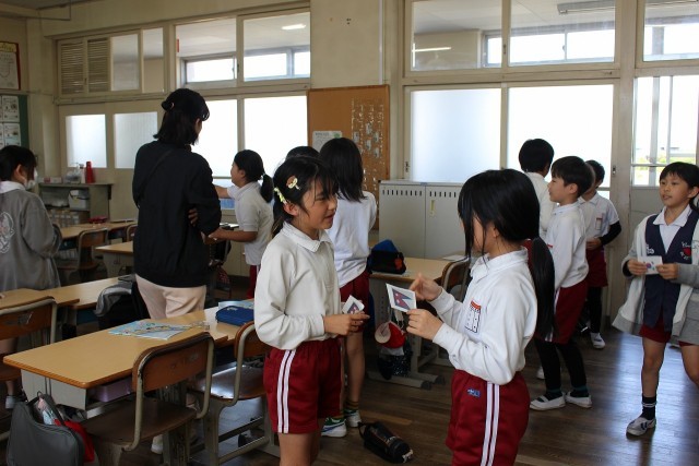 理科の時間には、3日間の気温の変化を棒グラフにあらわし、天気との関係について調べました。外国語活動の時間には、カードゲームを通して世界の様々な国のあいさつに慣れ親しみました。社会科の時間には、地図帳を見ながら愛知県の地形について調べました。