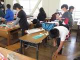 家庭科でエプロンを作っています。地域のボランティアの方に支援していただきながら、...