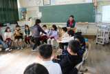 1年生のなわとび大会では、ファミリー班の6年生が跳んだ回数を数え、記録を取ってく...