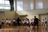 トヨタ車体のハンドボール選手を講師に迎え、ハンドボール教室を行いました。鬼ごっこ...