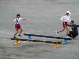 運動会で徒競走と障害物競走の練習をしました。