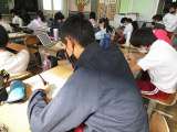 漢字の筆順をタブレットで見ながら練習しました。