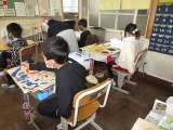 図画工作科で版画をしています。彫刻刀を使っています。