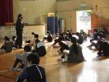 体育委員が、サーキットトレーニングの仕方を手本を見せて教えました。国際赤十字委員...