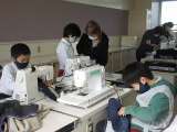 家庭科でエプロンを作っています。ミシン縫いを地域ボランティアの方に見守っていただ...