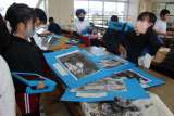 家庭科の時間には、エコバックのミシン縫いをしました。図工の時間には、卒業制作でフ...