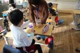 算数の学習では、数図ブロックを使って「おおいほう すくないほう」の数比べをしまし...