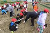 地域の方に教えていただきながら、ジャガイモの種の植え付けをしました。