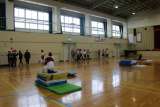 体育の時間には、マットを活用して台上前転の練習をしました。