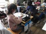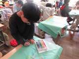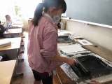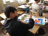 図画工作科で紙版画をしました。インクを付けて刷りました。