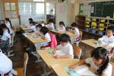 算数の時間には、「時刻と時間」の学習をしました。時計を使いながら考えました。書写...