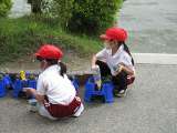 生活科で自分の好きな野菜を育てています。生長の様子を観察しました。