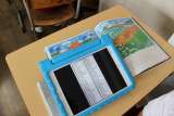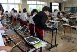 社会科では、学習用タブレットを使って豊田市についてプレゼン発表をしました。