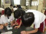 理科で植物が吸い上げた水の行方を調べています。顕微鏡で気孔を見ました。
