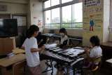 書写では、縦画を書くときの筆遣いや、リズムについて学びました。音楽の時間には、「...