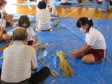 総合的な学習の時間に稲刈りで使う、すがい縄を作りました。地域の方に教えていただき...