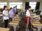図画工作科でゴムで動くおもちゃを作っています。