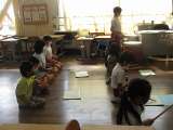 地域の伝統芸能を学習発表会で保護者の方に見ていただきます。練習をしています。