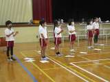学習発表会に向けて練習をしています。リズム遊びを取り入れた発表です。