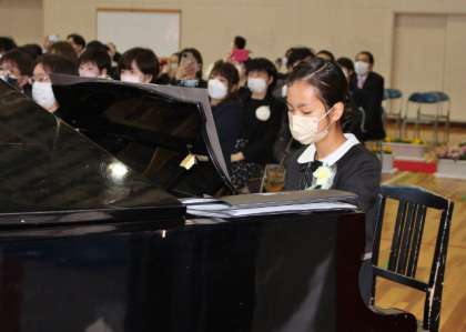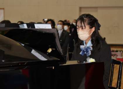 3月20日 卒業式 公開日 2023/03/25 更新日 2023/03/25 お知らせ 卒業生お別れの歌。体育館のステージ側には、合唱用のスタンドがあり、6年生全員が並びました。 歌を歌うときだけ、マスクをしていたのですが、そんなことも忘れてしまうくらい、力強くて、さわやかな歌声でした。心を打ち、心に届く歌声というのでしょうか。 その歌声を支えるピアノ伴奏も、体育館に素敵な音色を響かせていました。指揮者がいないのに、一つのハーモニーの中にいて、包み込むような残響がありました。