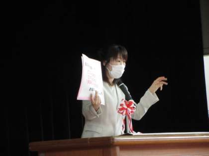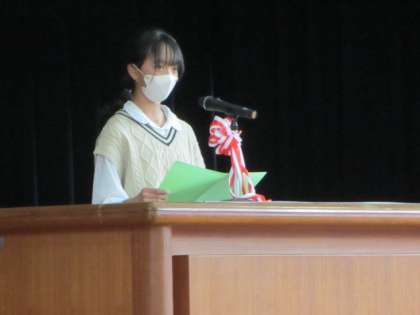 3月24日 修了式 公開日 2023/03/25 更新日 2023/03/25 お知らせ 修了式では、学年代表によるスピーチがありました。堂々とした話しぶりに驚くともに、聞き入ってしまいました。今年1年の思い出とともに、4月からの新しい学年へ向けての抱負を語ってくれました。 最後に、生活指導主任の先生から、春休みの過ごし方についての話がありました。