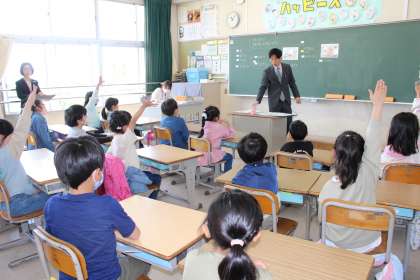 先生たちが、2年1組の道徳の授業と6年2組の朝の「名人タイム」を、見せてもらいました。どちらのクラスも、明るくあいさつして、教室に入る先生たちを迎え入れてくれました。先生たちは、授業や「名人タイム」の様子をじっくり観察したり、メモを取ったりしていました。放課後の協議会では、よいところや学んだこと、生かしたいこと、改善できそうなことを次から次へと出し合い、学び合っていました。先生たちの学び続ける姿勢は、子ども達にも伝わると思います。
