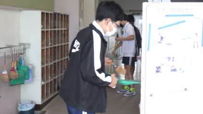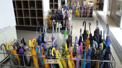 雨降りの朝、子ども達の傘が傘立てに集まります。傘を巻いて止めることがおぼつかなかった1年生も、自分でできるようになってきました。そんな傘を取りやすいように向きをそろえて整えてくれていたのが、6年生です。朝、自分の支度を終えると、昇降口で掃除をしたり、雨降りの日は傘を整えてくれたりします。ボランティアです。