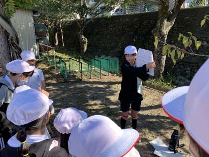 10月末に行われたグリーン大作戦は大成功でした。木の紹介では、木の実を用意して触らせたり、葉のにおいをかがせたり、花の写真を見せたりして、聞き手を引き付ける工夫をしていました。ためになるクイズもたくさんありました。