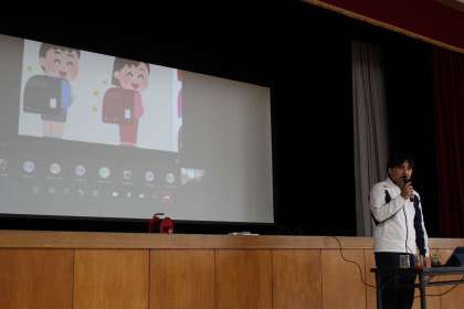 人権集会を行いました。欠席者の多いクラスがあるため、1、2年生は体育館で参加し、その他の学年はリモート視聴となりました。