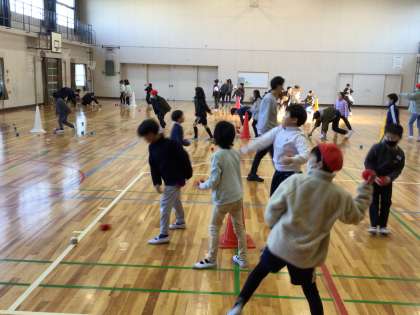 優勝・2位・3位のファミリーは、長い放課に体育館で、大谷選手からいただいたグローブも使って、楽しくボールを投げたり捕ったりしました。短い時間でどの子も上達し、感心しました。今後は体育の授業での活用を考えていきたいと思います。