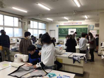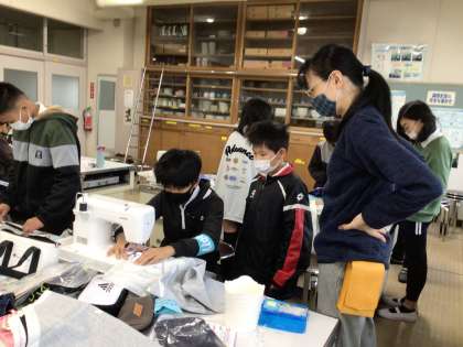 5年生が、家庭科の授業に、ミシンを使ってエプロン作りを行いました。5年生にとって初めてのミシンでしたが、若西キッズサポーターのみなさんが手伝ってくださったおかげで、作業が進みました。糸のかけ方や待ち針の打ち方、返し縫の仕方など、ちょっとしたことをすぐに聞けるのは本当にありがたいです。一方、若西キッズサポーターの方からも「子どもたちから元気をもらえたわ」という言葉をいただき、嬉しく思います。エプロンの出来上がりが楽しみです。