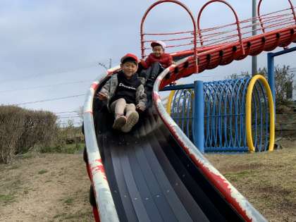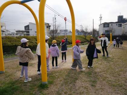 1年生が、若林西公園へ行きました。生活科「学校に来る道 帰る道」の授業で、通学路の途中に公園があることを知り、行ってみることになりました。話し合った交通安全のルールや公共のマナーに気を付けて、楽しく遊びました。みんなで遊んで、いい思い出になりました。