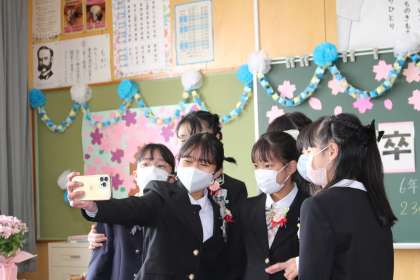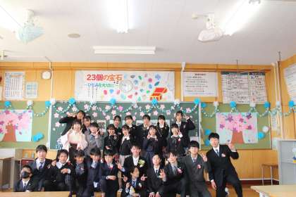 【校長室より】最後の学活 公開日 2024/03/22 更新日 2024/03/22 お知らせ 保護者の方に見守られての最後の学活です。卒業生は、担任の先生にメッセージを伝え、花束の贈呈をしました。先生や仲間との温かな関係がよく伝わる素敵な学活でした。
