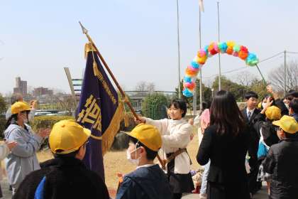 【校長室より】門送り 公開日 2024/03/22 更新日 2024/03/22 お知らせ 校旗を掲げる5年生の代表を先頭に、4、5年生や先生たちに送ってもらう門送りがありました。保護者の方と卒業生のみなさんの晴れやかな姿が印象的です。 保護者の皆様、お子様のご卒業、おめでとうございます。本校の教育活動に深いご理解とご協力をいただき、誠にありがとうございました。お子様の未来に幸あれと願っています。