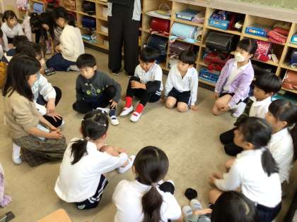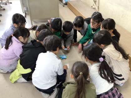 子どもたちは、手本を示したり言葉を選んだりしながら、下級生に伝わるように順序立てて説明していました。中には、「少しくっつきすぎているから離れようか」と優しく指示を出す子もいます。下級生も真剣に聞いていました。「子どもは子どもから学ぶ」、こんな素敵な姿が見られて嬉しいです。