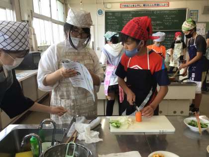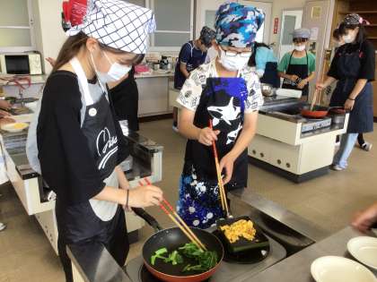 6年 調理実習 公開日 2024/06/12 更新日 2024/06/12 お知らせ 班の友達と協力して、野菜炒めと青菜炒めを作りました。 実習後のふり返りでは、ゆでる調理と炒める調理の触感や彩りなどの違いを見つけたり、手際よく行うことの難しさを感じたりする子がいました。 どの子も一生懸命取り組むことができました。