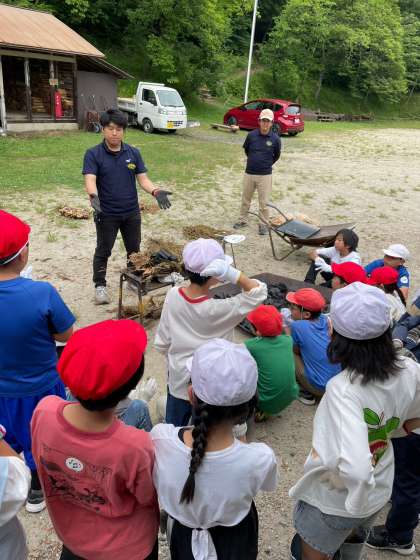 次は、火を起こして炊飯準備を行います。