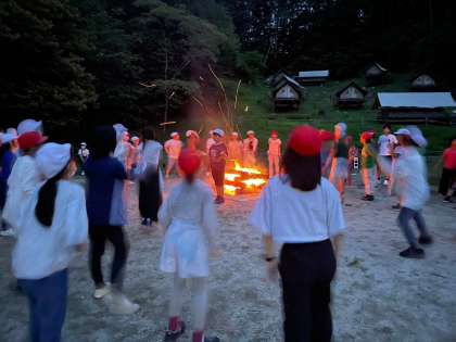 生憎の雨ですが、子どもたちは今日も頑張ります。 昨日のファイヤーの様子からてす。