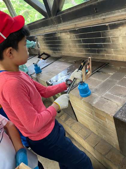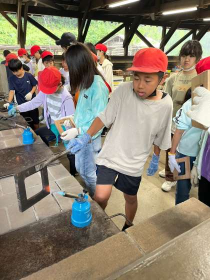 木の枠をガスバーナーで焼きます。