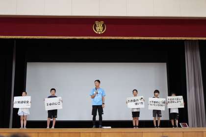 明日から夏休みです。家で過ごすことが多くなる子どもたちには、「家族のために何かやりたいことを1つ見つけて、かなえていこう」と伝えました。また、本校で話や指導をしてくださった川端魁人選手や高橋峻也選手のパリオリンピック・パラリンピックでの活躍も楽しみです。9月、元気な姿で子どもたちに会えることを楽しみにしています。