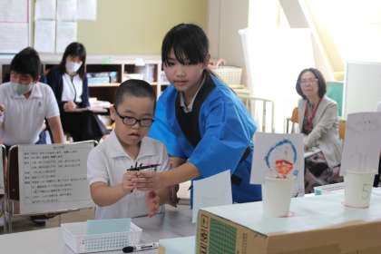 7組の子どもたちが、自立活動の研究授業を行いました。自立活動とは、一人一人の個性を生かして、人間関係の形成やコミュニケーション力など社会でよりよく生きるために必要な力をつけるための、通常学級にはない活動のことです。