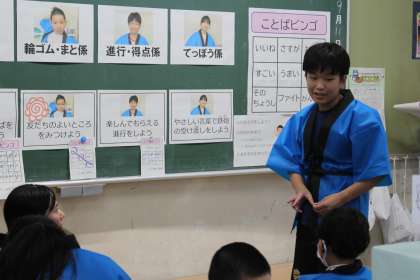 今回の授業は、子どもたちが各自のよさを生かしながら射的祭りを計画し、6・8組を招待しました。たくさんの参観者がいる中、自分の役割を一生懸命に果たそうと取り組む姿や、招待した友達に「すごいね」「おしい」と声をかける子どもたちの姿がありました。笑顔がいっぱいの授業となりました。