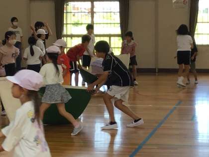 9月も猛暑が続いて外遊びができない時間帯もある中、WBGT(暑さ指数)とにらめっこをしながら、なんとか行うことができました。ファミリーで協力して素早くマットを運ぶ姿や、ボールを落としてしまっても最後まであきらめずに取り組む姿に感心しました。また、健康委員がしっかりと道具の準備・片付け、司会などをしてくれたおかげで、スムーズに活動ができました。