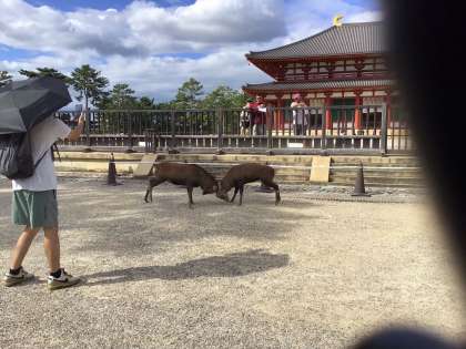 鹿が争っています。何があったのでしょう。