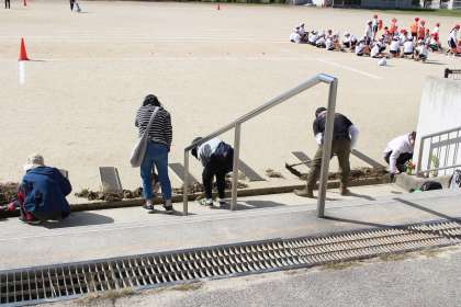 2時間目、高学年が運動会の練習をしている脇で、保護者の方が溝掃除をしてくださいました。溝の中に大きく育っていた草や大量の泥を取り、水はけがよくなりました。