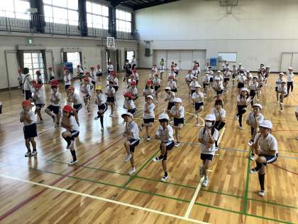 子どもたちはどの学年も毎日練習に励み、だいぶ仕上がってきました。今年度は、高学年の種目の中に応援が入りました。朝、高学年が下の学年のクラスに行って、応援の仕方を教える姿も見られ、元気のよい声が響いています。本番が楽しみです。