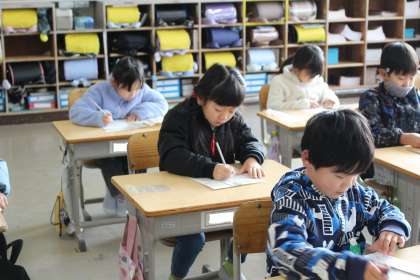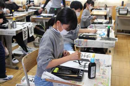 ※2,3枚目写真は、書初め大会の様子